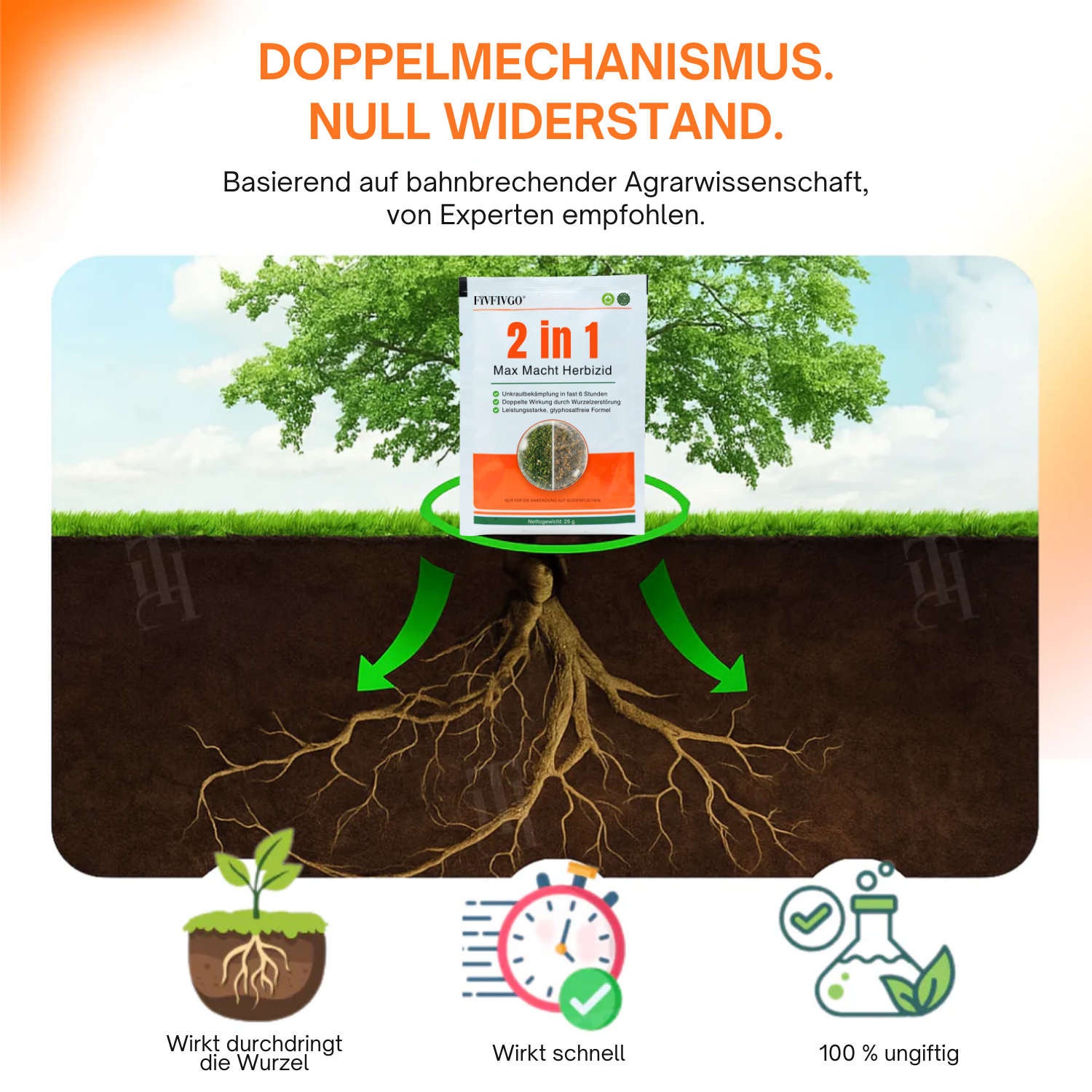 Verabschieden Sie sich von hartnäckigem Unkraut! Fivfivgo® nutzt revolutionäre Dual-Action-Technologie, um Unkraut sowohl an Blättern als auch an Wurzeln zu bekämpfen – selbst die widerstandsfähigsten Sorten – und liefert Ergebnisse in nur 6 Stunden.
