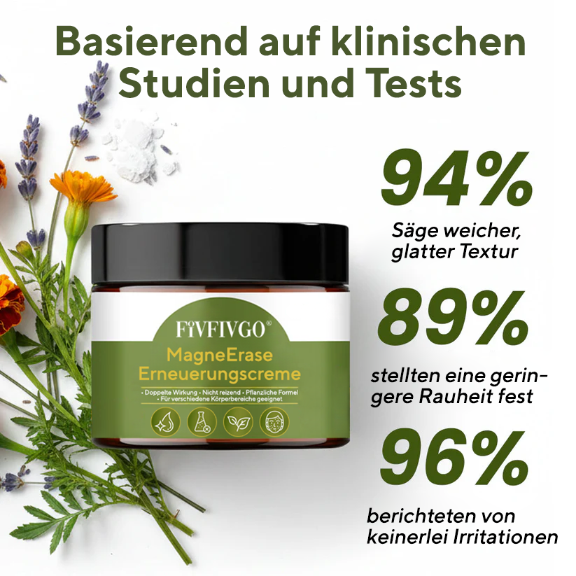 Deshalb haben wir die Fivfivgo® MagneErase Renewal Cream entwickelt – eine sanfte, pflanzenbasierte Formel, die Unebenheiten glättet, tiefe Hornhautablagerungen löst und hartnäckige Pigmentflecken aufhellt – ganz ohne Säuren, Brennen, Schälen oder Reizungen. Säurefrei · Für die tägliche Anwendung geeignet · Sichtbare Glättung in 7–14 Tagen