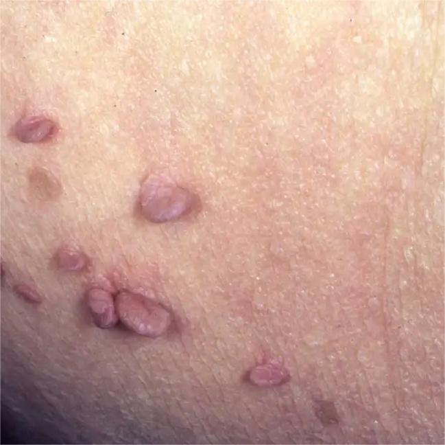❌Weiche, hautfarbene oder hellbraune Läsionen.