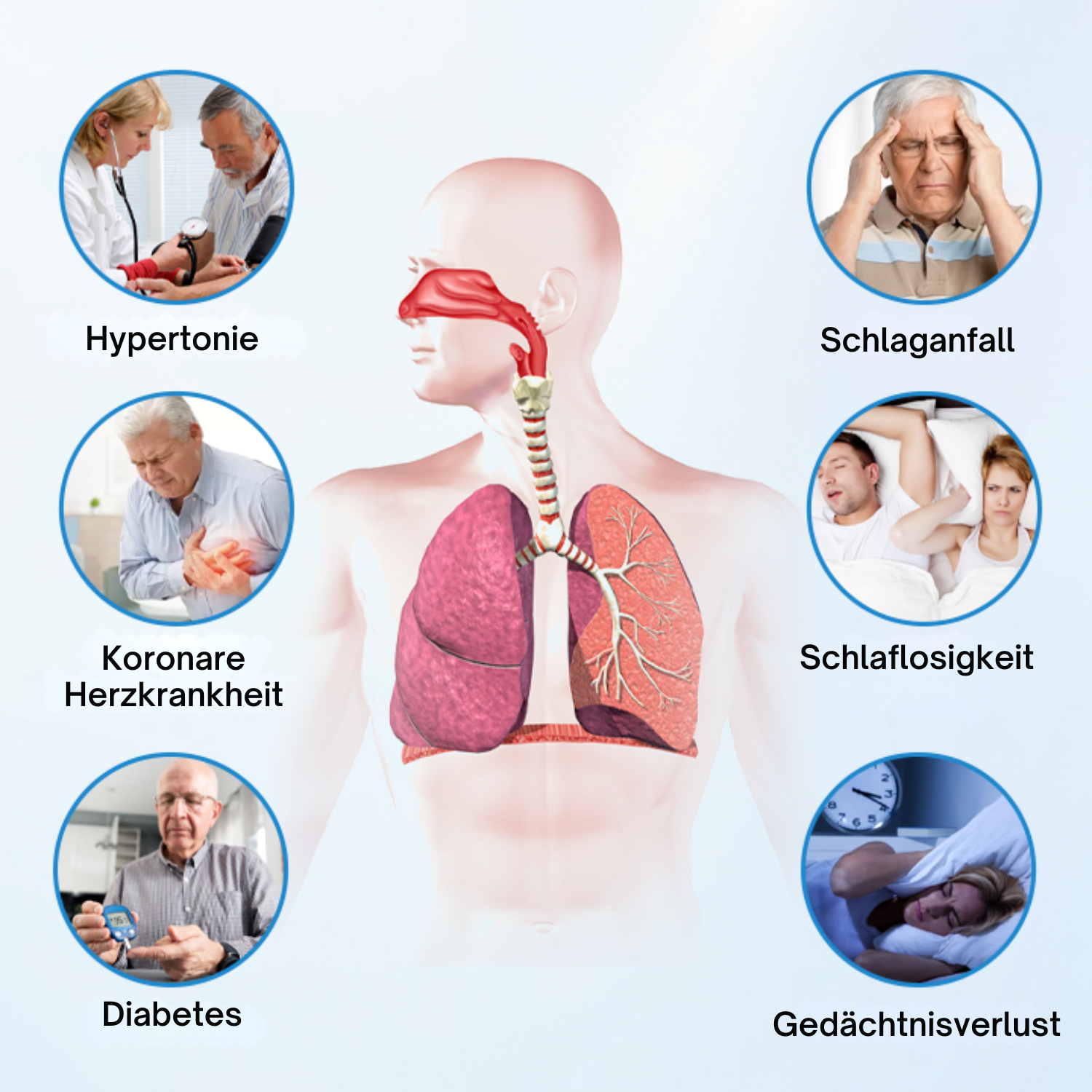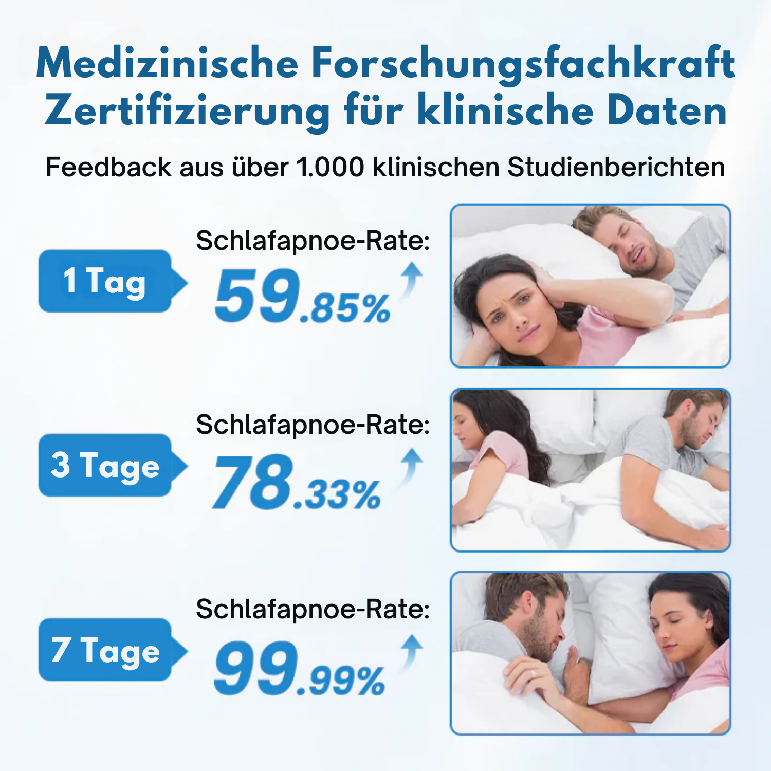 🔬 Klinisch validiert: In einer klinischen Studie des European Respiratory Health Center mit 428 mittelschweren bis schweren Schnarchern: